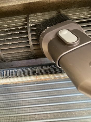 ファンを外し水洗いの方法もありますが、状況からハケと掃除機による掃除をしました。