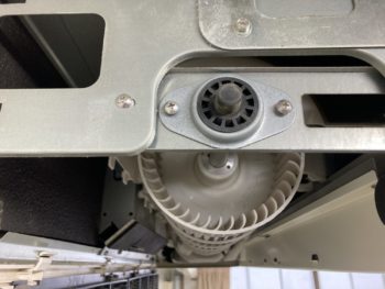 室内機の中の様子です。モーターを中心に、左側にファンが3つ、右側にファン1つになっています。