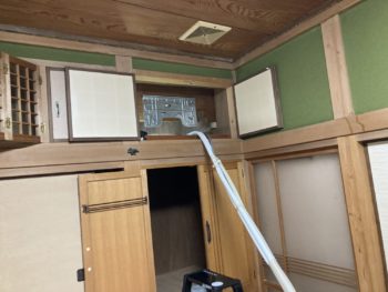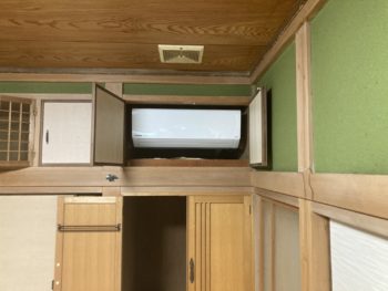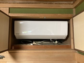 天袋内に設置する作業です。エアコン室内機を設置しても扉が閉まる様にします。